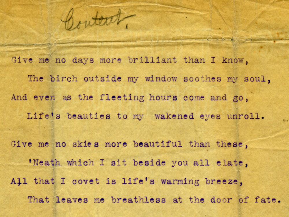 Typescript for Paul's poem Content.  Courtesy of the Ohio History Connection.  Paul Laurence Dunbar Collection, MSS 114.  Image MSS114_B10_F02_004.tif.